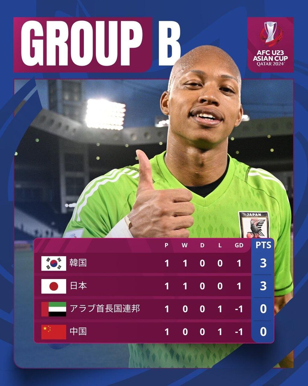 アディショナルタイムは9分と長めに取られたが、終始試合をコントロールした日本が無失点で試合を終え、2連勝。同じく2連勝の韓国と並び、決勝トーナメント進出を決めた。日本は最終節、首位通過の座を懸けて韓国と対戦する。