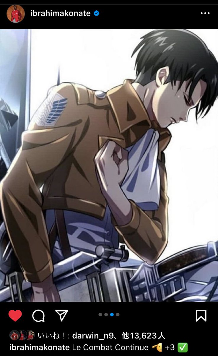 試合後、リヴァプールDFイブラハマ・コナテは遠藤との2ショットをInstagramに投稿。南野拓実によれば、コナテは日本アニメが好きだそうで、『進撃の巨人』に登場するリヴァイ・アッカーマンの画像も一緒に投稿していた。これに遠藤も敬礼と炎の絵文字で反応している。