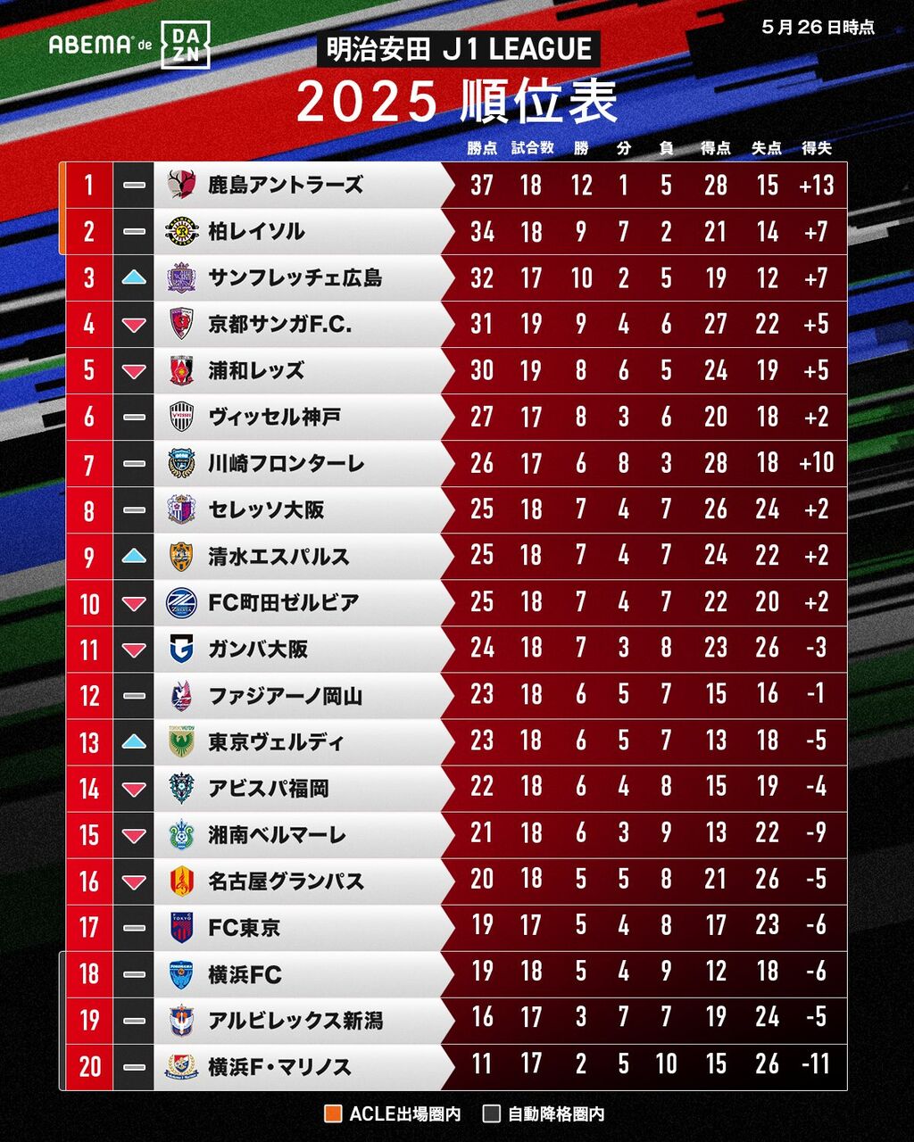 ✅横浜FM-鹿島は3.2万人。首位相手にホームマリノスが勝利し連敗を7で止めた