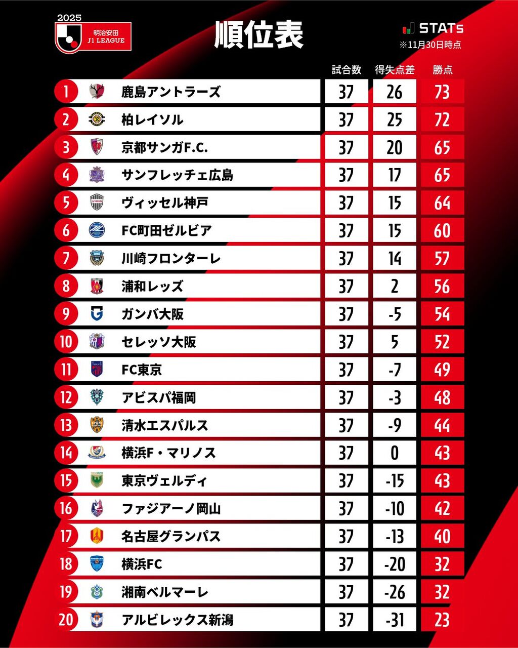 茨城県の鹿島アントラーズがJリーグ9年ぶりの優勝!水戸もJ2優勝!