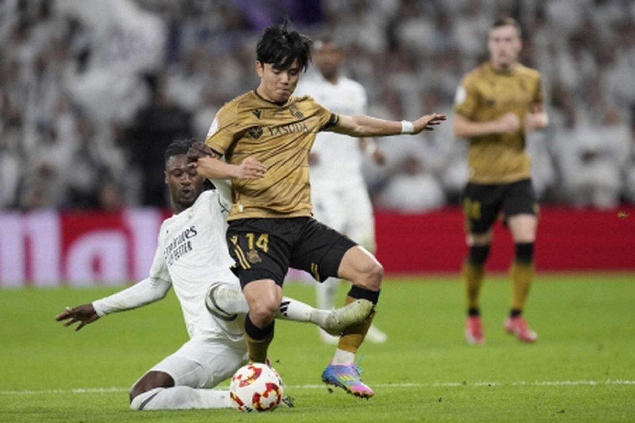 左SBで起用されたフランス代表MFカマビンガのタイトなマークに苦しんでいた久保は前半アディショナルタイム、ようやくいい形で仕掛け、ボックス内でヴィニシウスに抱き抱えられるようにして倒れるも、笛は鳴らず。納得がいかず、ハーフタイムに主審に抗議する姿も見られた。