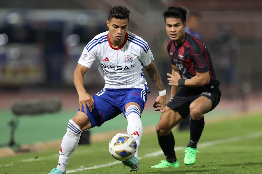 前半の終盤にかけては両チームがチャンスを作り合う。横浜FMはヤン・マテウスの強烈なミドルシュートやナム・テヒのボックス内への飛び出しで相手ゴールを脅*。42分にはルンラト・プームチャントゥエクに際どいシュートを放たれるも、GKポープ・ウィリアムが横っ飛びで枠外へ弾き出した。前半はこのまま1-2で終了する。